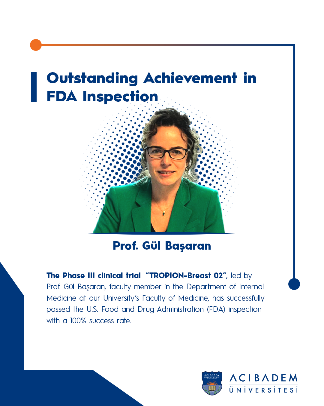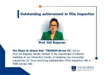 The Phase III clinical study “TROPION-Breast 02” in the field of adult oncology, conducted under the leadership of Prof. Gül Başaran from the Department of Internal Medicine at our School of Medicine, was found to be fully compliant following an inspection by the U.S. Food and Drug Administration (FDA), with no observations reported.